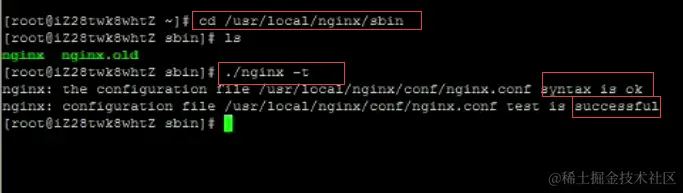 方法一:进入nginx安装目录sbin下,输入命令./nginx -t