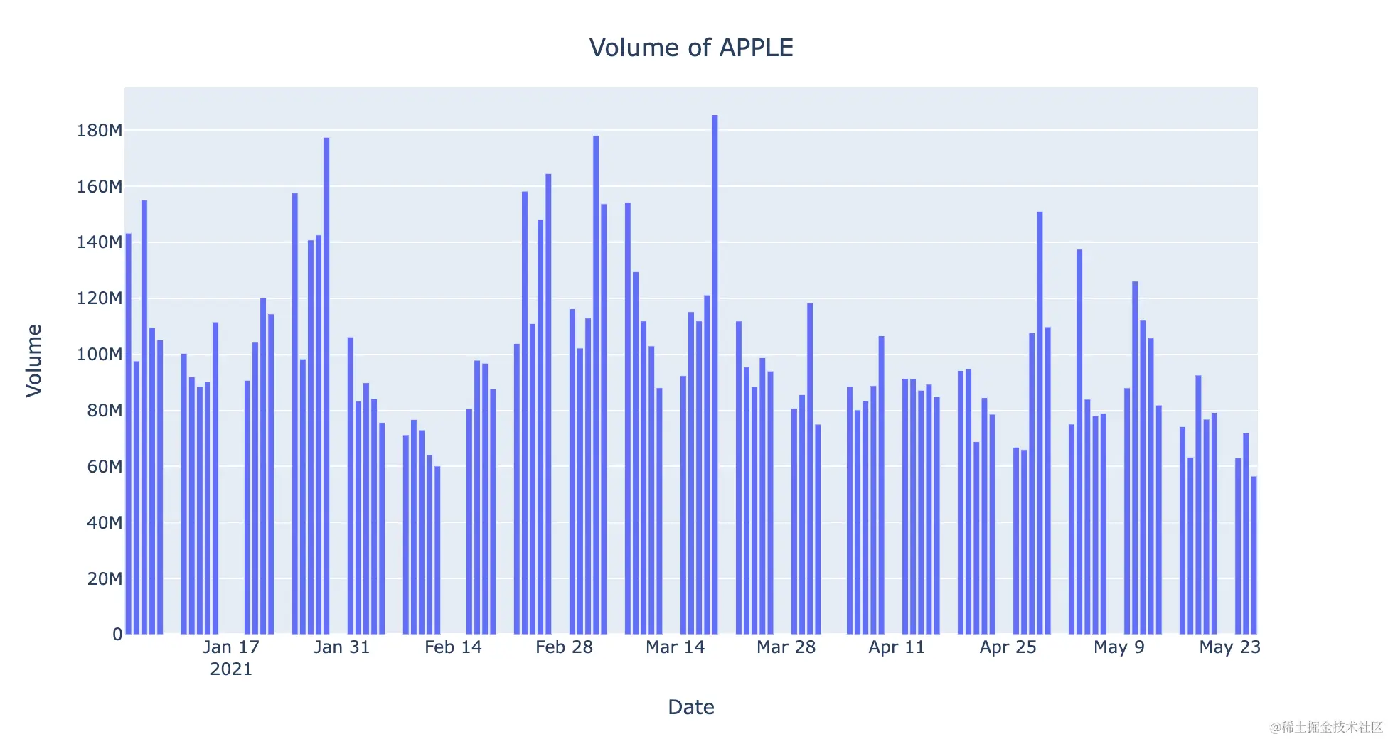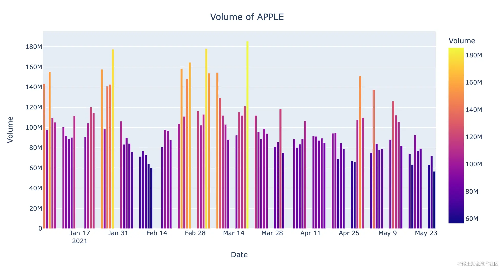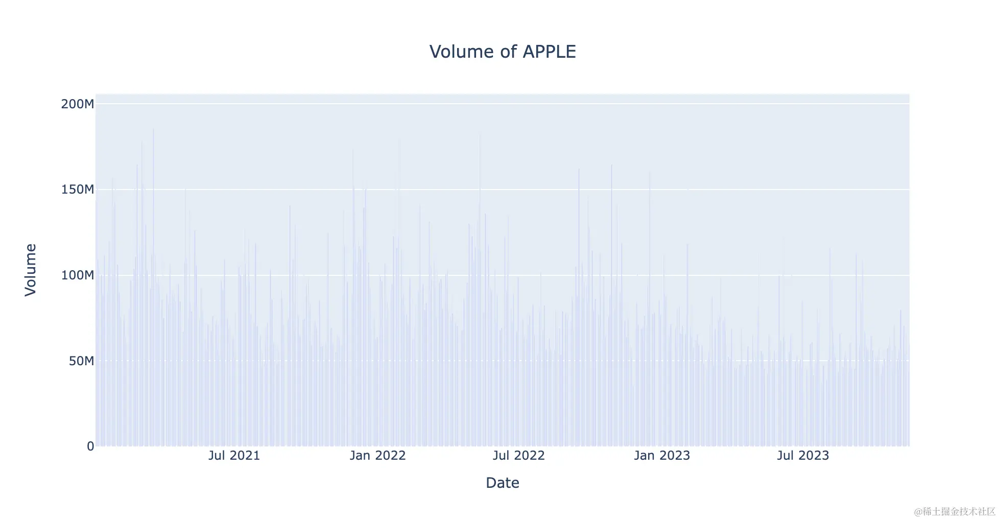 fig.update_layout(title='Volume of APPLE',