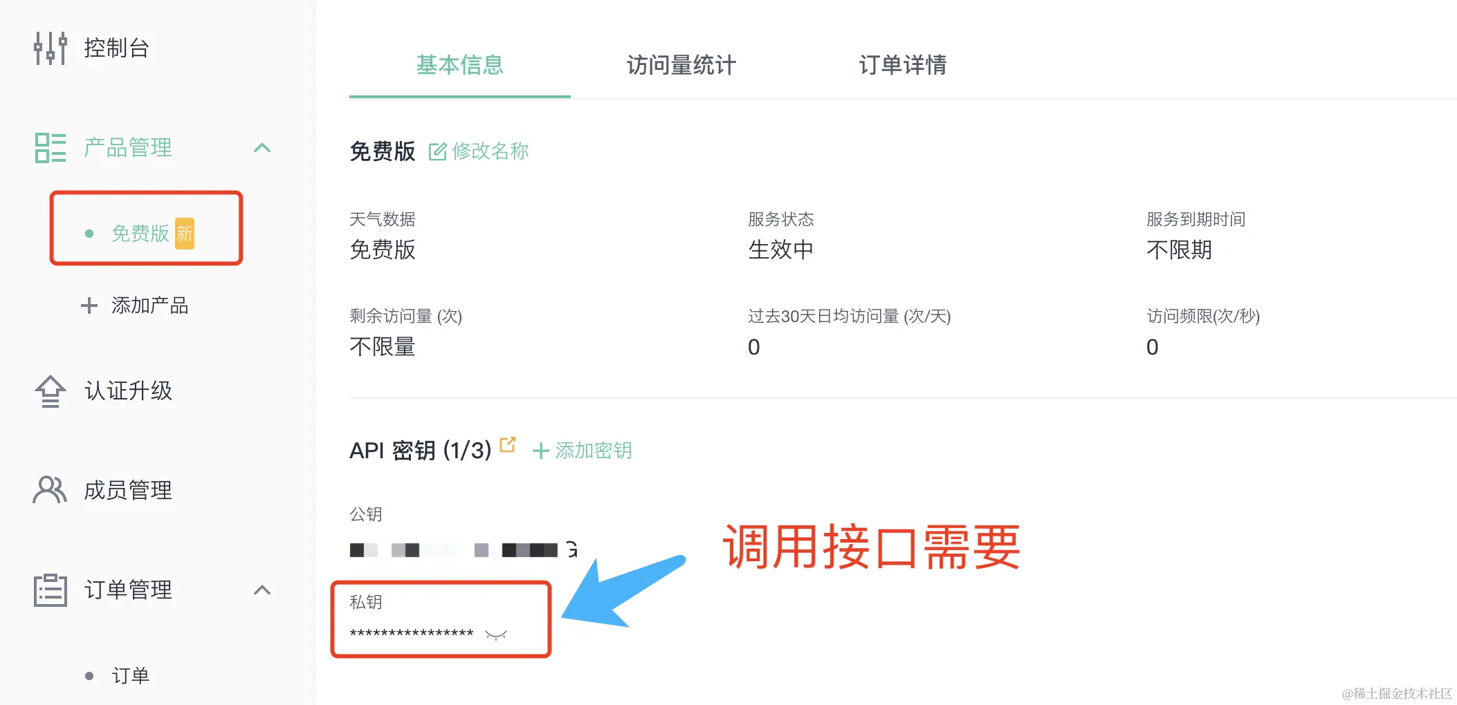 这里我们将使用“心知天气”提供的免费天气查询服务,大家感兴趣的可以去这里注册个账号:www.seniverse.com/,注册成功后,需要复制账号的私钥,调用天气接口时会用到。