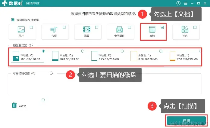 这款软件对新手来说也是比较友好的,在进行数据恢复时,它有机会通过简单的操作步骤恢复丢失的重要数据。并且软件是支持多种类型的文件恢复的,需要使用软件的用户可以按下方步骤操作啦!