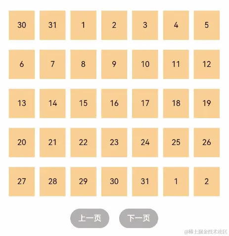 与新闻列表的返回顶部场景类似,控制滚动位置功能在网格布局中也很常用,例如下图所示日历的翻页功能。