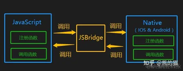 JSBridge 作为 JavaScript 与 Native 之间的一个 桥梁,表面上看是允许 JavaScript 调用 Native 的功能,但其核心是建立 Native 和 非 Native 间消息 双向通信 通道。