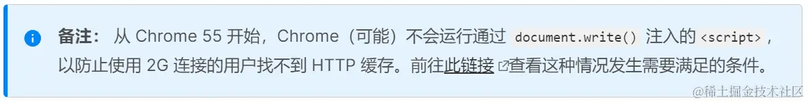 在 MDN 里写了,从 Chrome 55 开始,Chrome(可能)不会运行通过 document.write() 注入的 <script>,以防止使用 2G 连接的用户找不到 HTTP 缓存。所以这种方法用来动态注入 <script> 脚本根本不可行。