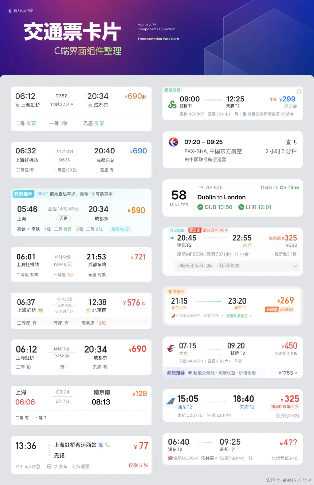 本文介绍了交通票卡片的设计方式,包括字段、布局方法、往返票卡片设计、换乘票卡片设计以及不同的卡片样式。还提到了Flighty这个航班跟踪App的卡片样式,以及其他交通票卡片的线上案例。