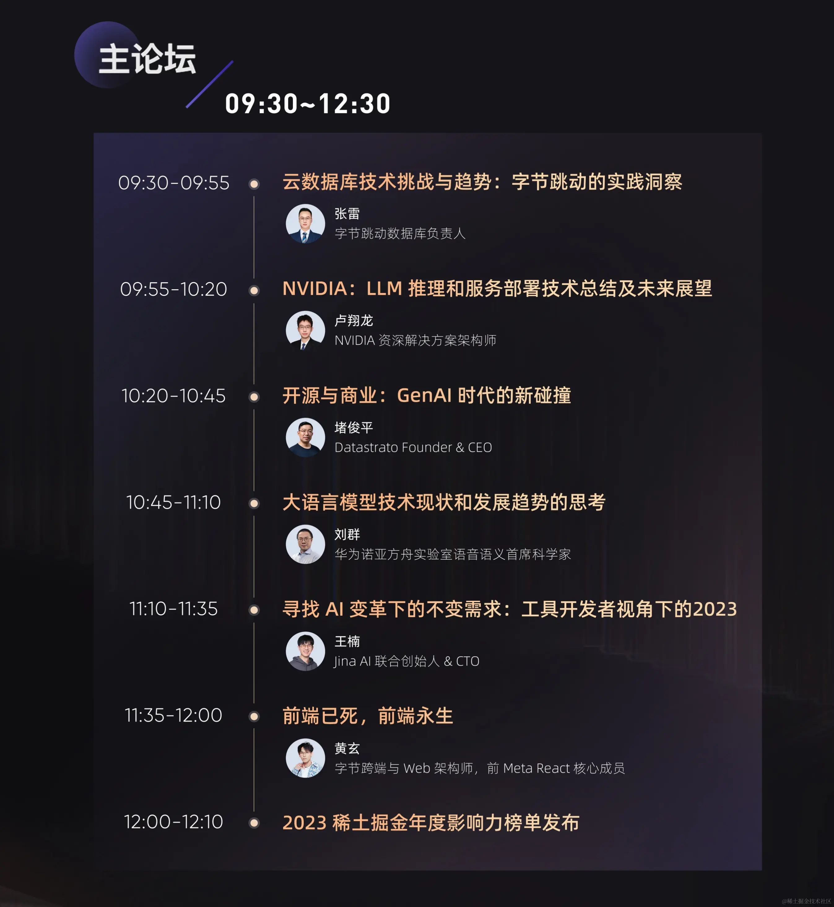本届 掘金年度演讲 主论坛共有6名嘉宾坐镇,他们分别是:
