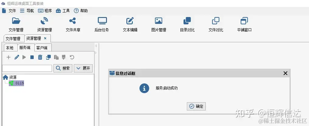 注:启动成功的情况下,对话框会提示启动成功,图标变为绿色。