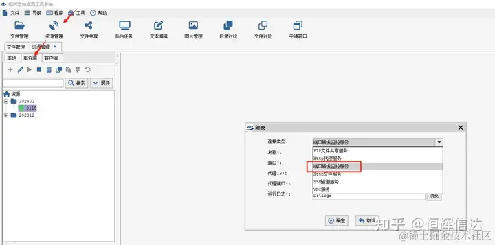 弹出窗口,连接类型选择“端口转发监控服务”;