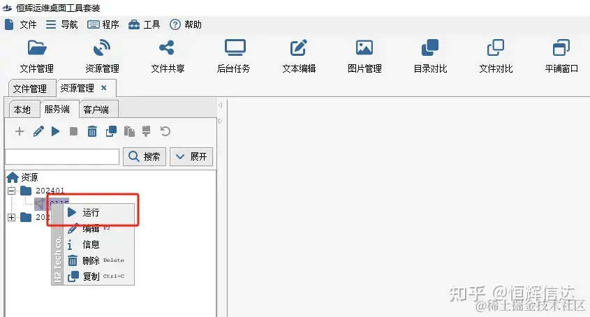 首先点击HHDESK主页的“资源管理”,选择服务端,右键点击新增,选择资源;