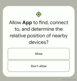 BLUETOOTH_ADVERTISE、BLUETOOTH_CONNECT和BLUETOOTH_SCAN权限是运行时权限。因此必须在应用程序中明确请求用户批准,才能查找蓝牙设备,使设备可被其他设备发现,或与已经配对的蓝牙设备通信。当你的应用程序请求这些权限中的至少一个,系统提示用户允许你的应用程序访问附近的设备,如图1所示。