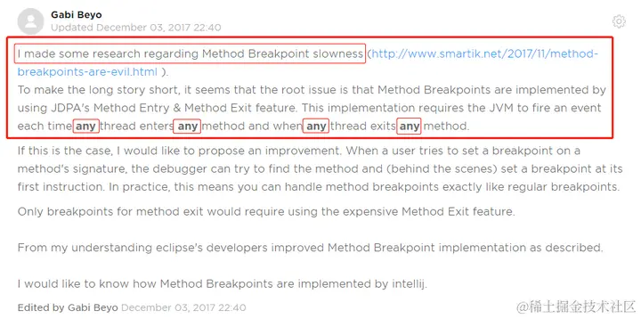 Gabi 老铁说:哥子们,我研究了一下这个方法断点为啥会慢的原因,研究报告在这里: