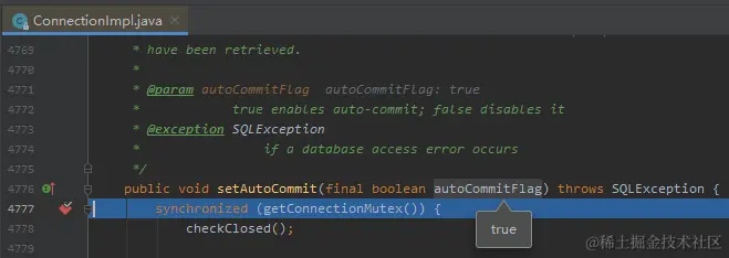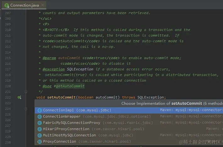 setAutoCommit 这个方法有好几个实现类,我也不知道具体会走哪一个:
