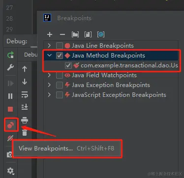 你点击 IDEA 里面的下面这个图标,View Breakpoints,它会给你弹出一个框。