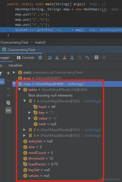 这是勾选之后,map 集合在 Debug 模式下的样子: