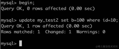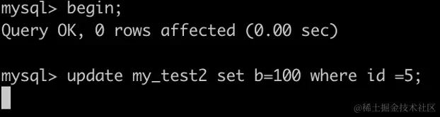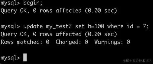 事务A执行UPDATE my_test2 SET b=100 WHERE id =7;