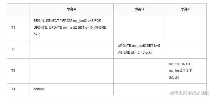 INSERT INTO my_test2 VALUES(-1,0,0); //不阻塞