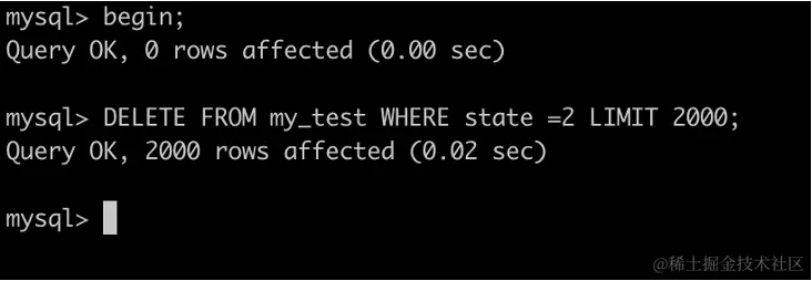 执行 DELETE FROM my_test WHERE state =2 LIMIT 2000;