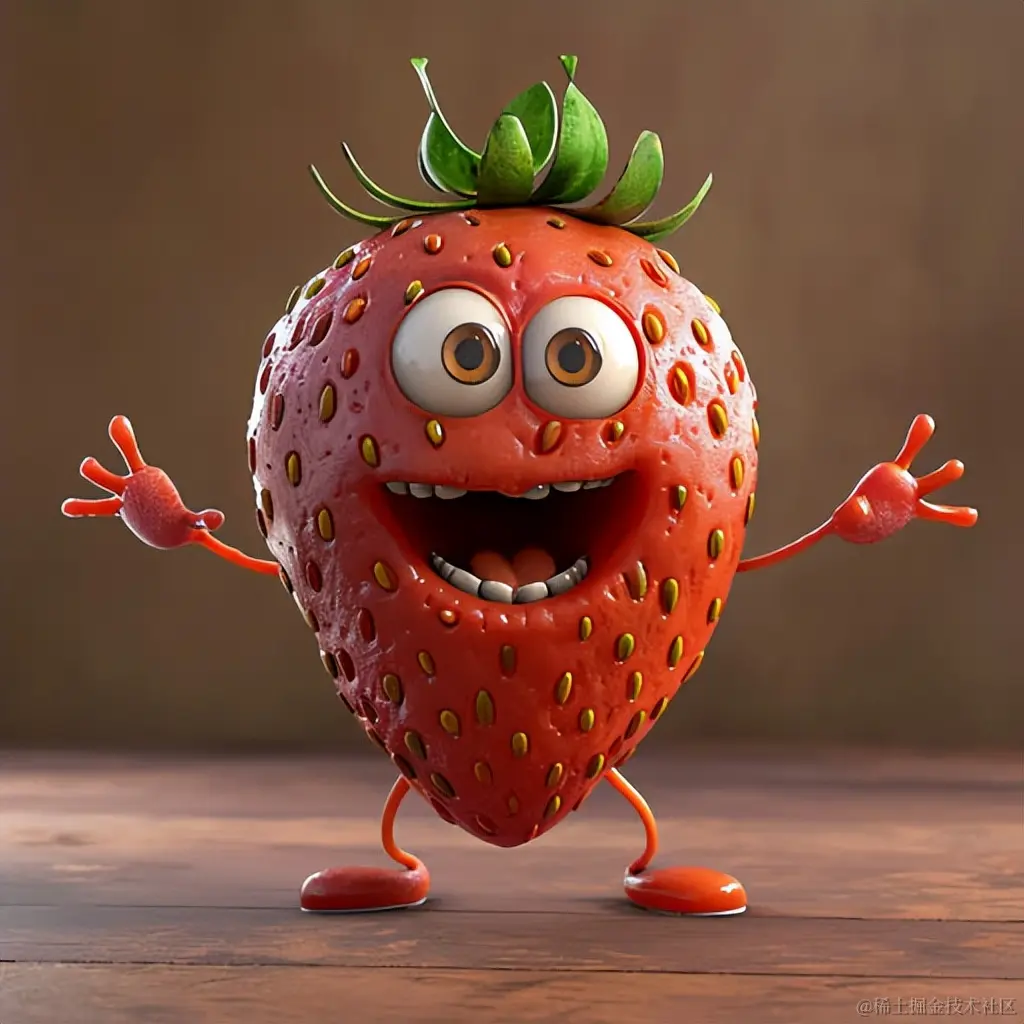 a 3d photo rendered of a cartoon strawberry character with open arms, in the style of spiky mounds, daz3d, cranberrycore, cute cartoonish designs, orange, carpetpunk, photo-realistic techniques