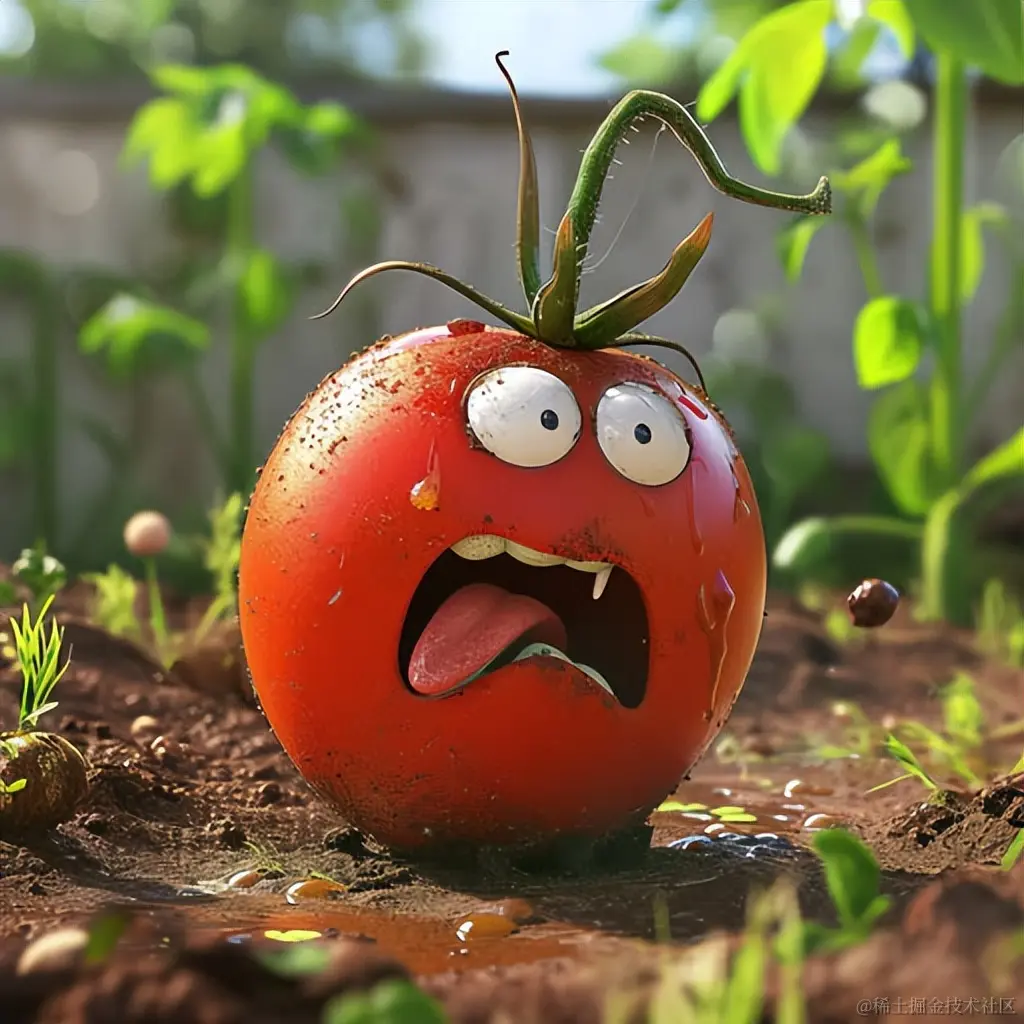 在泥土中的动画番茄,眼睛和舌头,Dmitry Spiros风格,HD模型,玩味卡通,Raphael Lacoste风格,Igor Zenin,迷人的角色