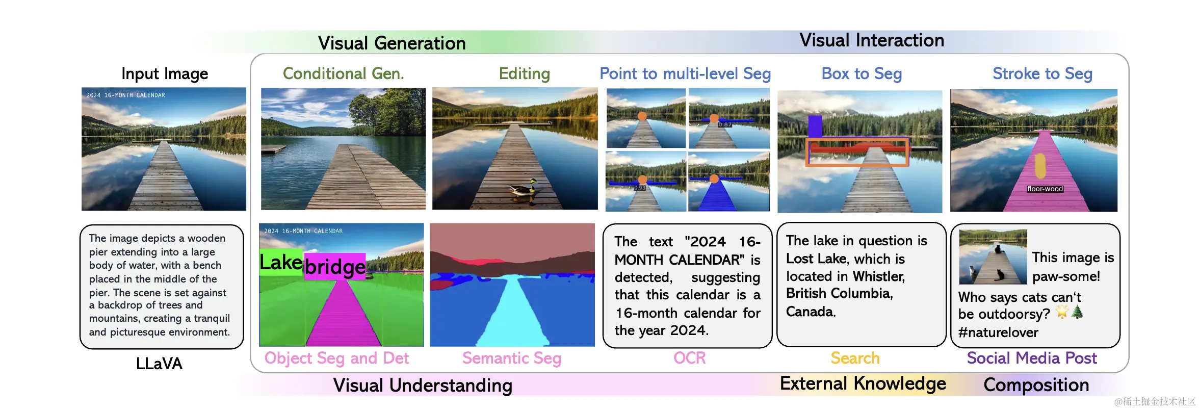 LLaVA-Plus拥有多样化的功能。除了能够处理基本的图像编辑任务,如物体检测、分割、打标签等,它还支持进行复杂的OCR处理和图像美化。此外,LLaVA-Plus能够与外部知识进行交互,支持用户与模型的实时交互,如对点击区域进行实例分割等。