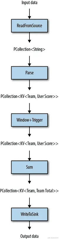 Beam 提供了一个用于将数据读入 Dataflow 管道的源 API。⁹ 如果处理失败并且需要确保每个数据源产生的唯一记录被精确执行一次,Dataflow 可能会重试从源读取数据。