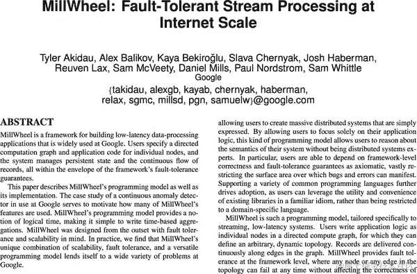 通过将强一致性和精确一次处理与水印和定时器等关于时间的推理工具相结合,MillWheel 征服了对无序数据进行强大流处理的挑战。