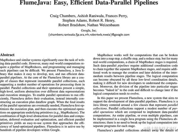 通过将逻辑管道操作的高级概念与智能优化器相结合,Flume 使得编写干净、可维护的管道成为可能,其能力超越了 Map→Shuffle→Reduce 的 MapReduce 的限制,而又不牺牲通过手工调优获得的性能。