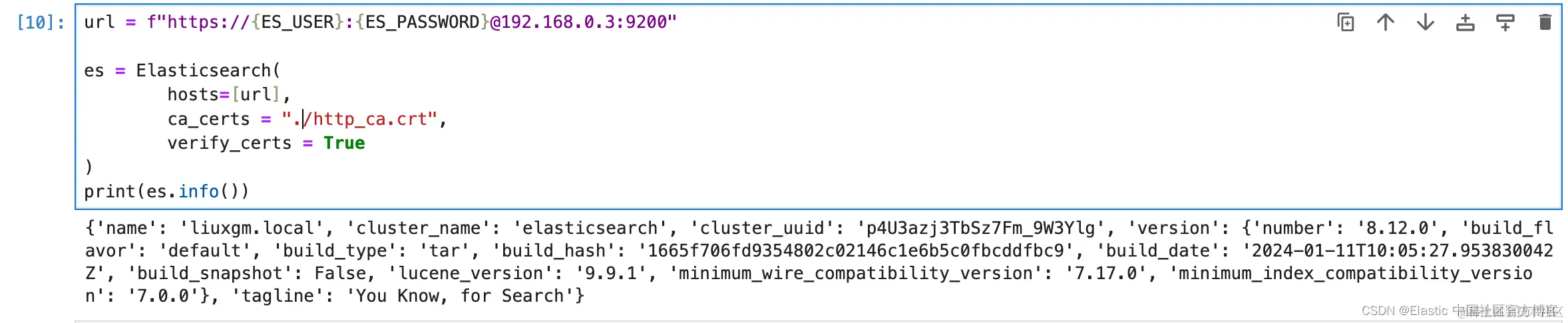 1. url = f"https://{ES_USER}:{ES_PASSWORD}@192.168.0.3:9200"