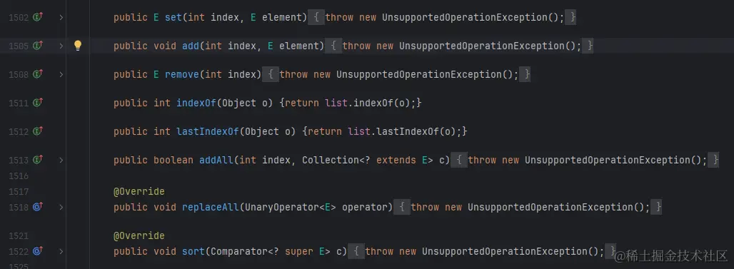在公司看到开发环境突然发现了UnsupportedOperationException 报错,想到了不是自己throw的应该就是操作collection不当。