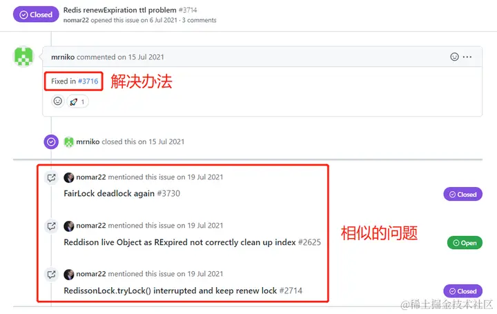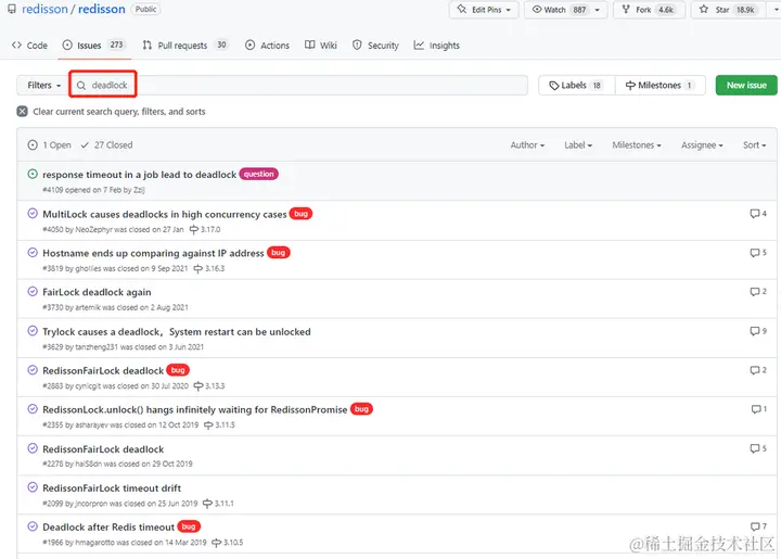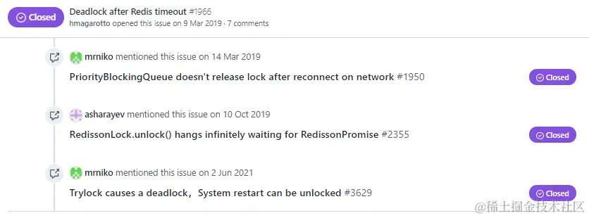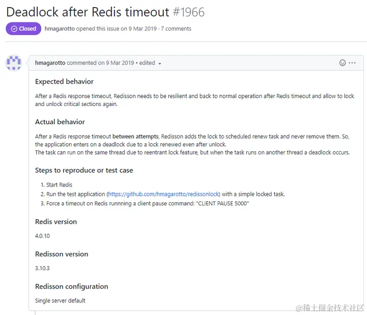 比如,上面的截图中,最后一个叫 Deadlock after Redis timeout 的 issue,就是我想要找的东西: