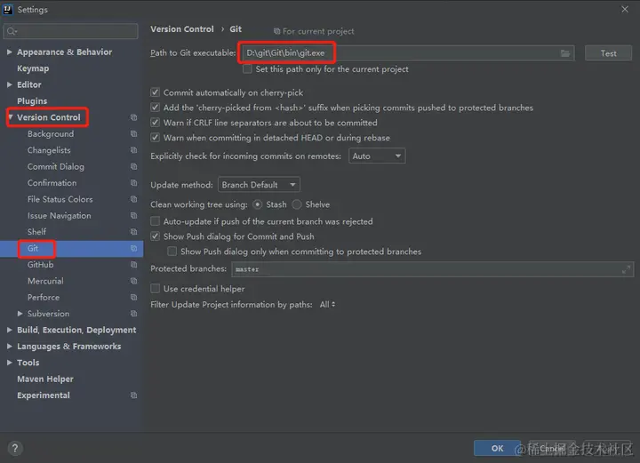 总之,只要能调出 Version Control 标签页或者有的高版本里面就叫做 git,就代表配置成功了。