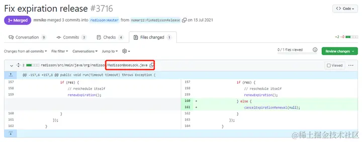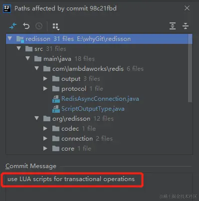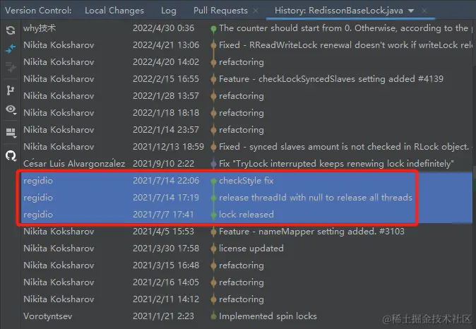 而且我也能知道这次提交对应的类叫做 RedissonBaseLock.java: