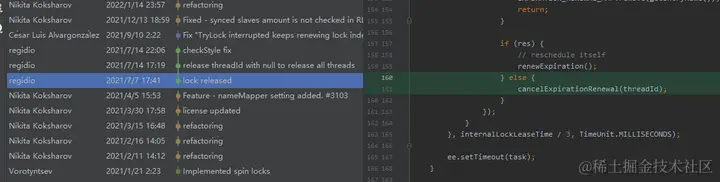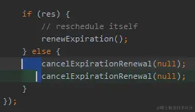 我才发现原来看门狗还换过名字,它之前叫做 scheduleExpirationRenewal,后来才改名叫 renewExpiration。