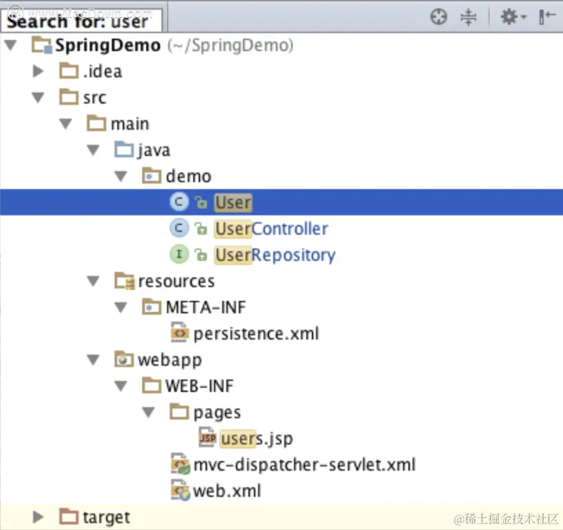 IntelliJ IDEA中的大多数组件(工具窗口和弹出窗口)都提供速度搜索。此功能允许您过滤列表,或使用搜索查询导航到特定项目。