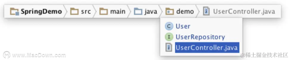 该导航栏是一个紧凑的替代 项目工具窗口。要访问导航栏,请按 ⌘↑。