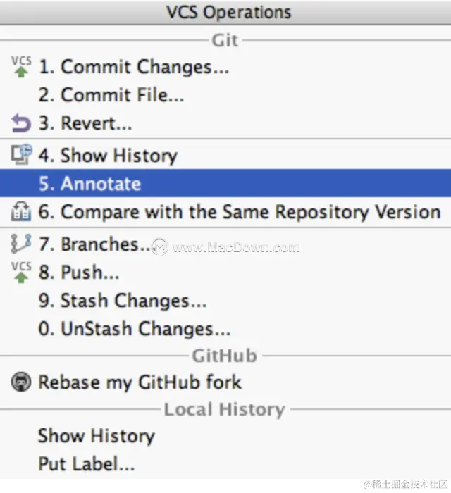 要在当前文件,目录或整个项目上快速执行VCS操作,请按下VCS操作弹出窗口 ⌃V