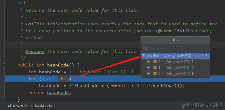 经过 filterInvoker 方法后元素还是【1,2,3】,与过滤之前一样,所以 hashCode 没有变。