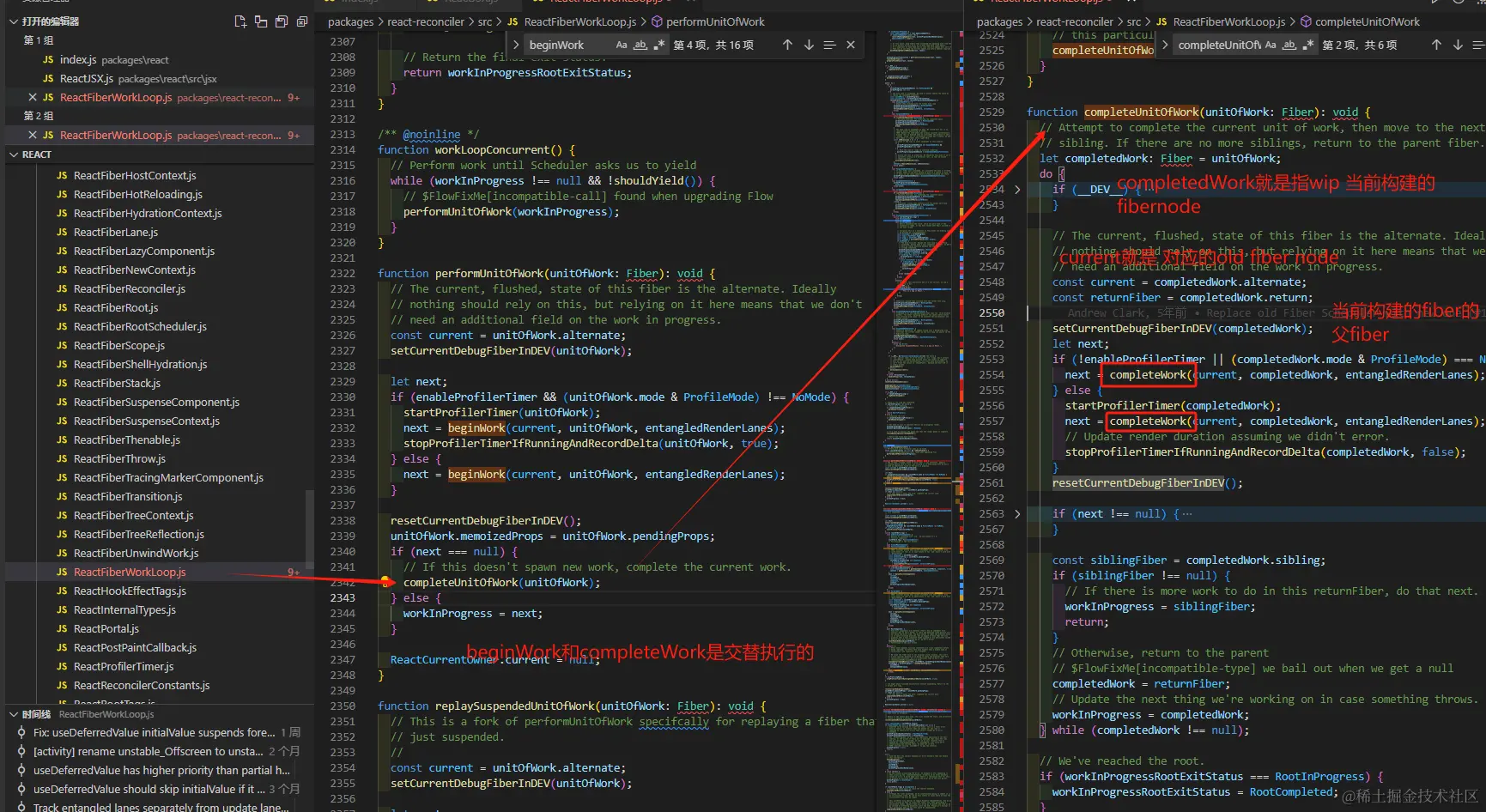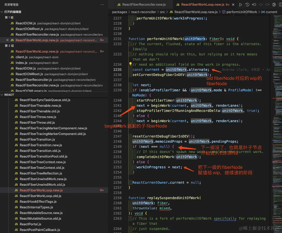 performUnitOfWork的工作分为2个部分,就是上面提到的递和归