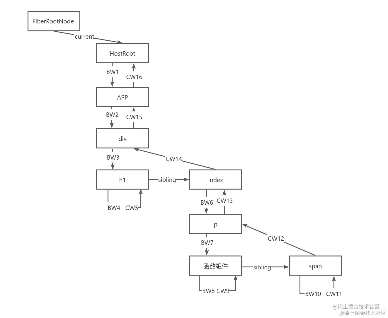 1、fiber构造循环是以树为数据结构, 从上至下执行深度优先遍历(详见react 算法之深度优先遍历).