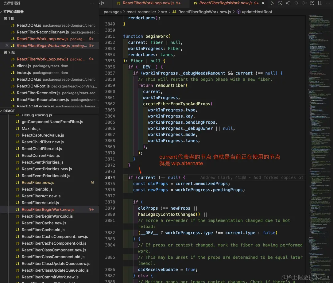 current: 代表当前页面正在使用的fiber node ,也就是workInProgress.alternate