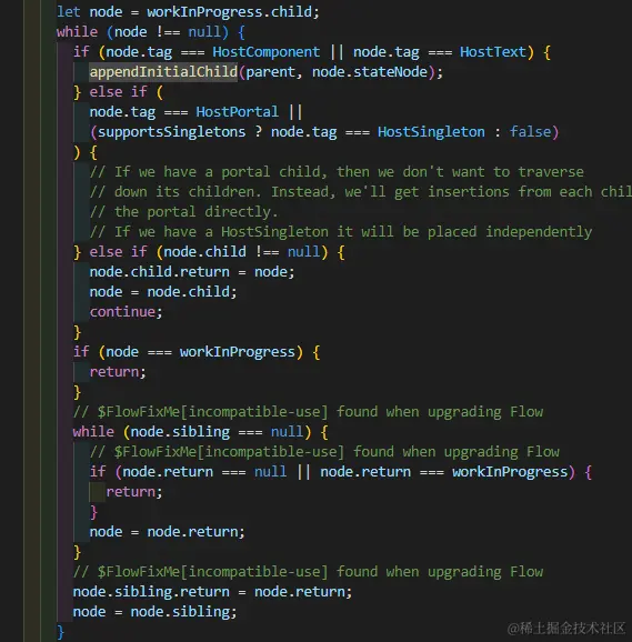 由代码看到 如果currentFirstChild不为null,意思就是说currentFiber下面还有,则进入while循环,