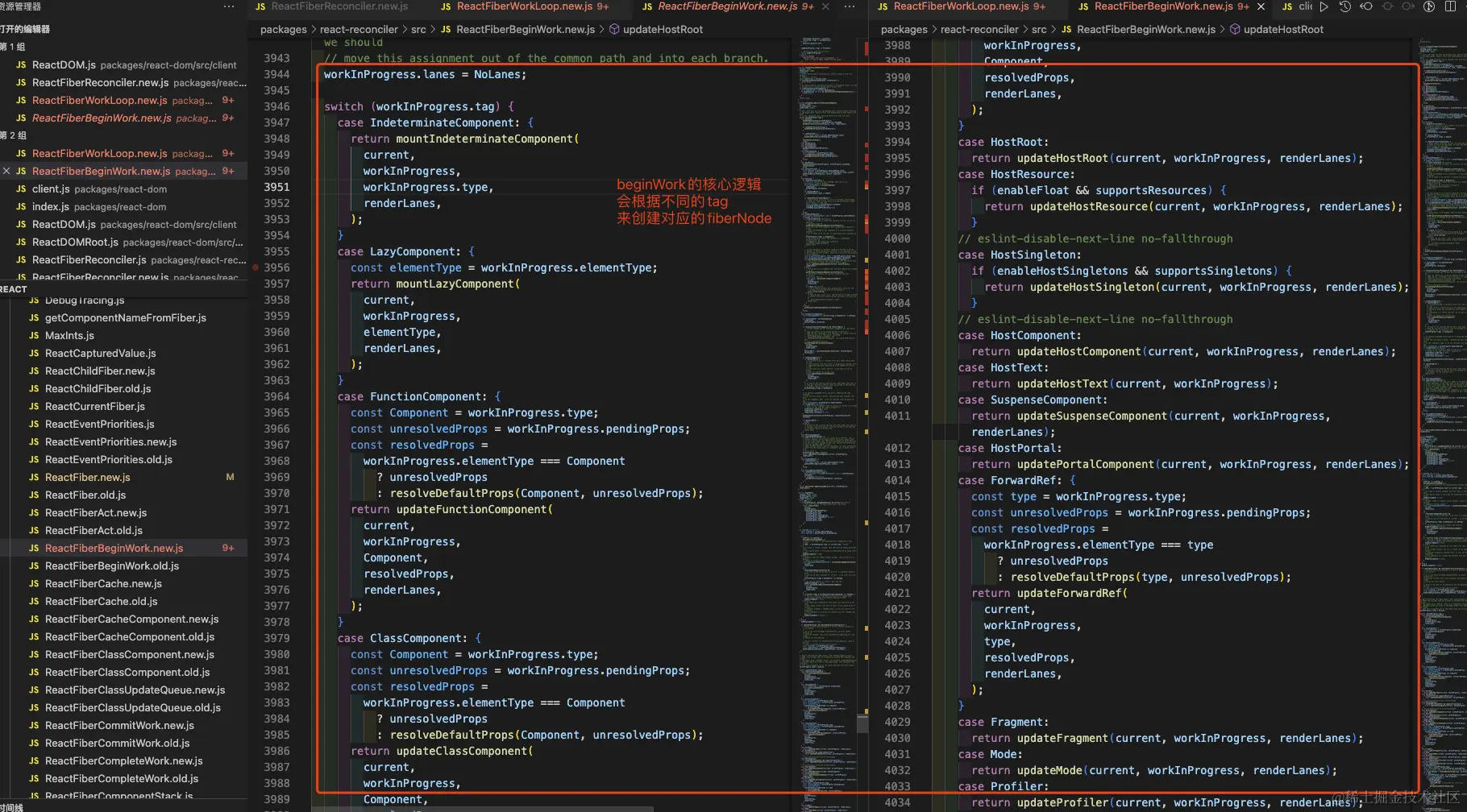 比如HostComponent 会去执行updateHostComponent, 这个方法内部最终会去执行reconcileChildren方法