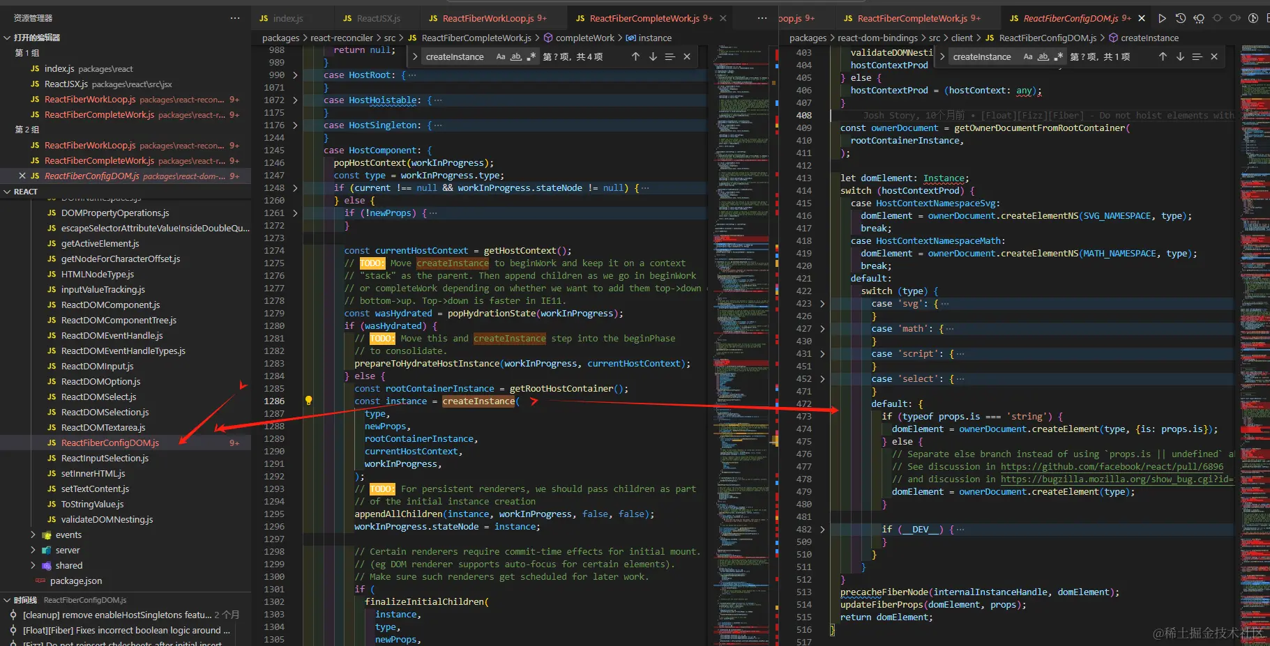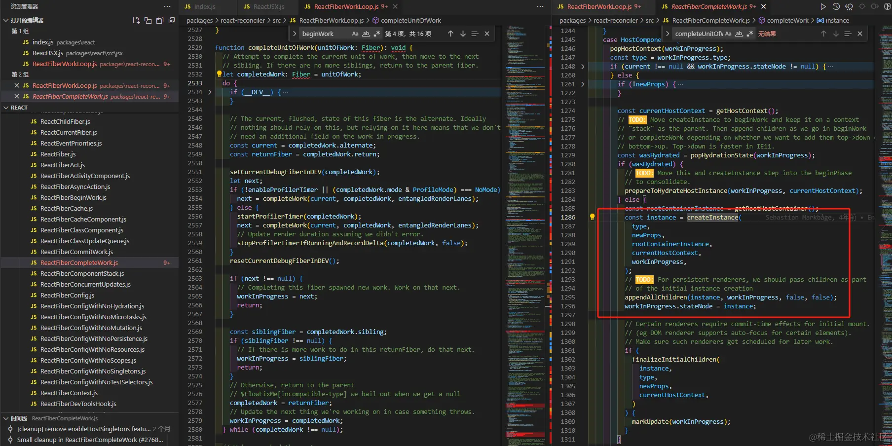 createInstance干的事情就是通过fibernode的type创建DOM节点,并且通过return拿到当前的父节点,将创建好的element添加到父节点的stateNode中,最后返回这个element,然后执行appendAllChildren方法,这个方法的任务就是将后代节点插入到当前节点