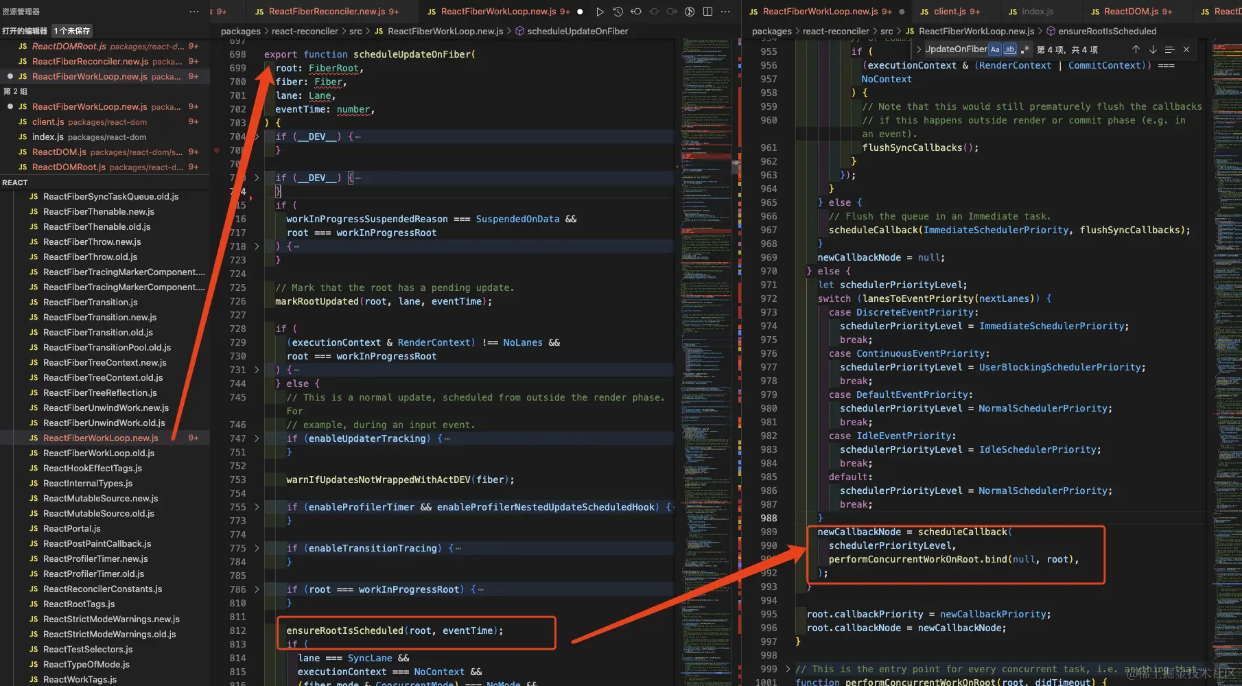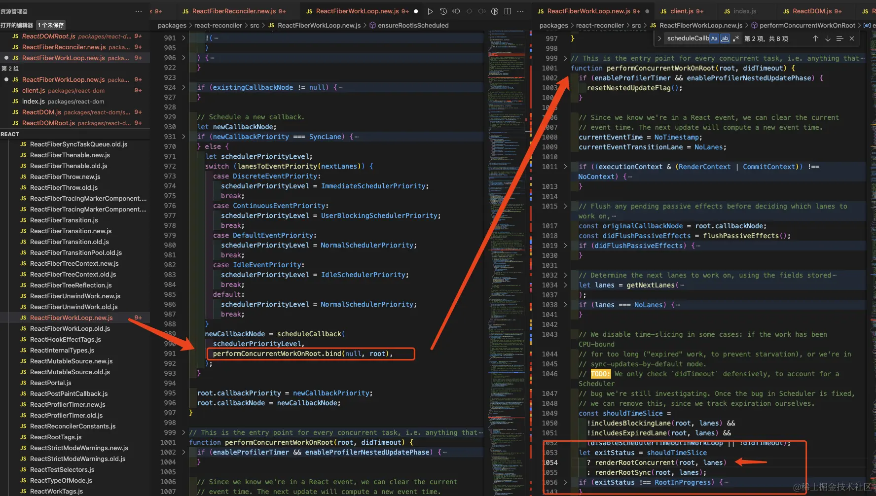 2、任务调度循环的逻辑偏向宏观, 它调度的是每一个任务(task), 而不关心这个任务具体是干什么的(甚至可以将Scheduler包脱离react使用), 具体任务其实就是执行回调函数performSyncWorkOnRoot或performConcurrentWorkOnRoot.