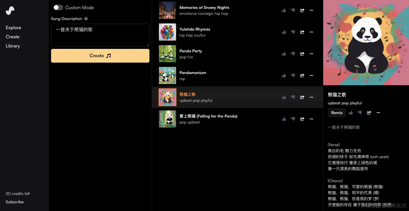 Suno.ai 是一个歌曲生成工具,只需要输入提示词,ai 就会帮助你生成一首歌曲,就像 midjourney 一样,提示词可以是英文或者中文,不需要你有专业的音乐知识与乐器,只需要想象力就可以创造歌曲。