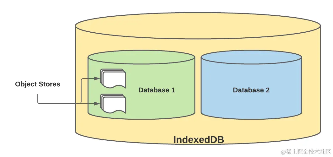 上面三种方式都是存储少量数据的时候的存储方式,当需要在本地存储大量数据的时候,我们可以使用浏览器的 indexDB 这是浏览器提供的一种本地的数据库存储机制。它不是关系型数据库,它内部采用对象仓库的形式存储数据,它更接近 NoSQL 数据库。