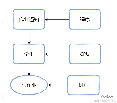 就像我们(学生/员工)就像是CPU,上头(老师/老板)给的任务(静态的指令)就是程序,我们工作的这个动态的就是进程了