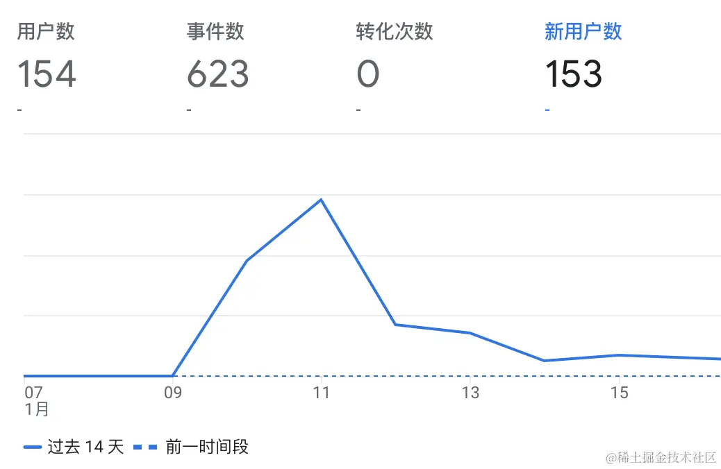 当天网站就被google收录了,近14天的访问数据大概在600+(GA统计的)