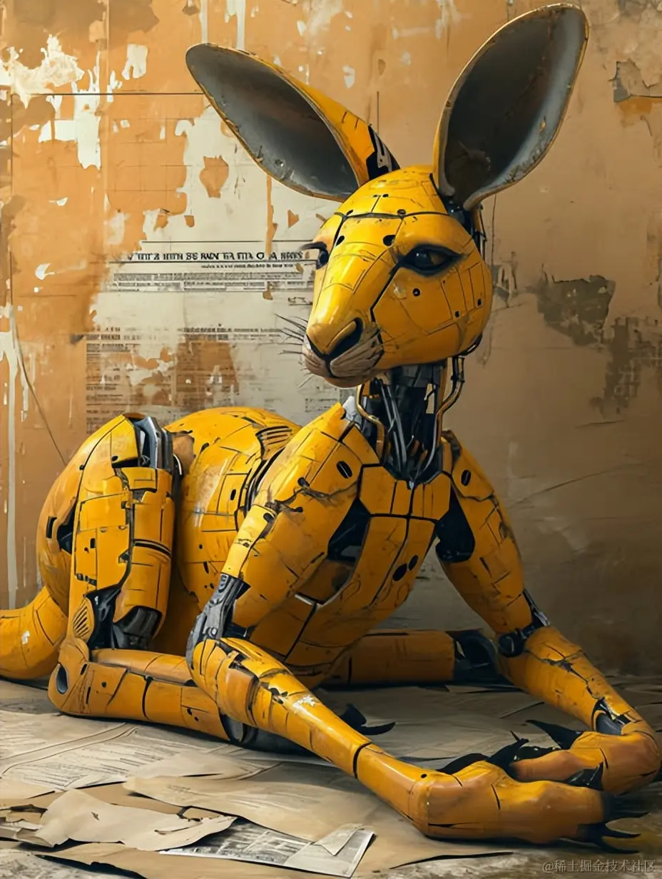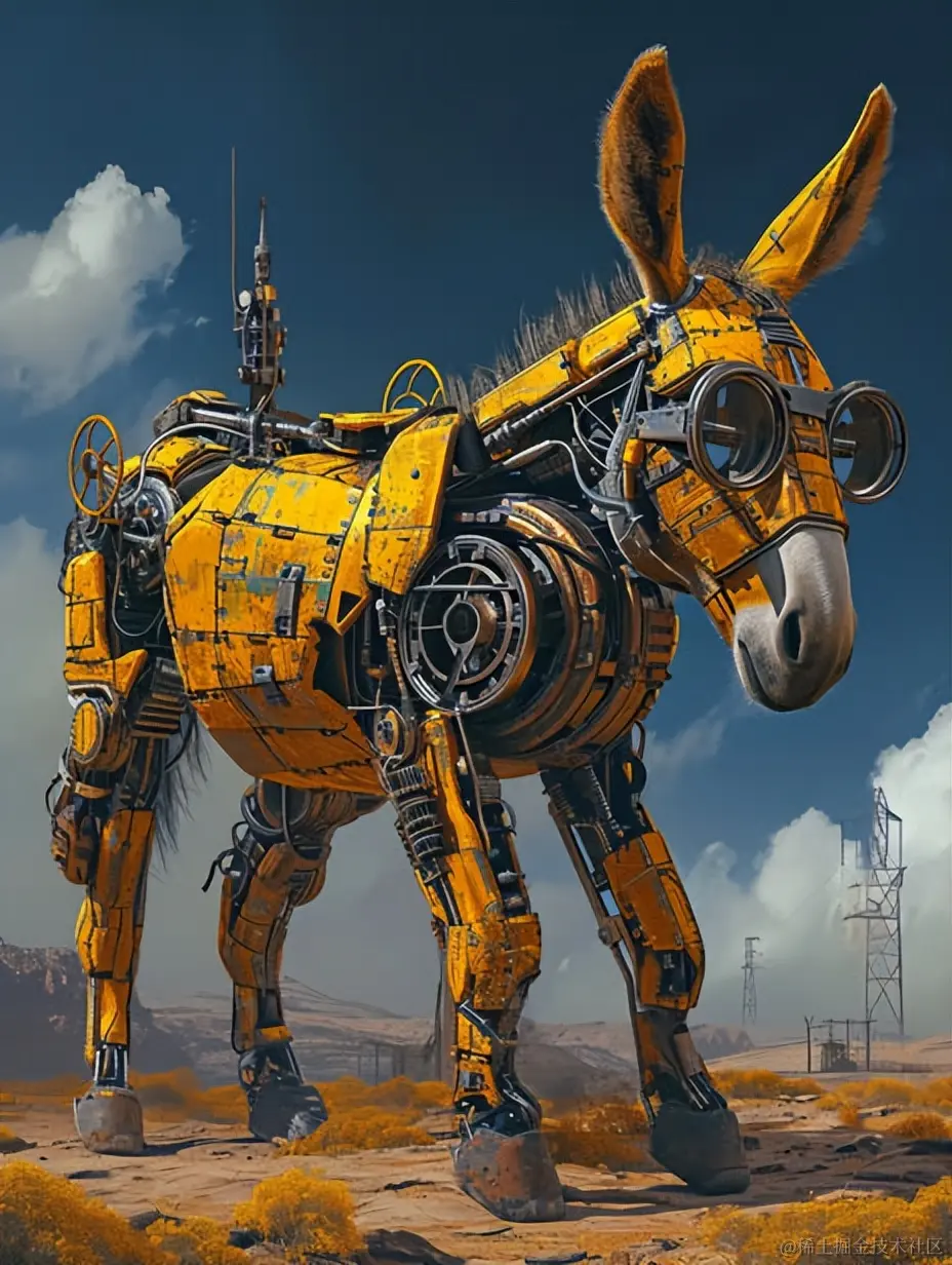 在这15组绘画关键词中,黄色机甲动物的身影独具匠心,将机械美与自然灵动相融合。
