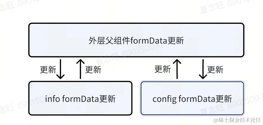 只要有一方formData更新变化了,就会影响其它两方的组件的数据更新。