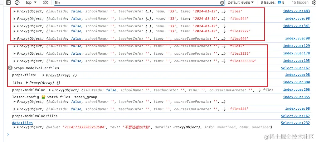 虽然最后也找到了哪个组件触发的重新赋值更新,但是已经没什么意义了,这块代码已经动不了了,能做的只有在其基础上不断修复,基础代码已经定型,除非全部整改。